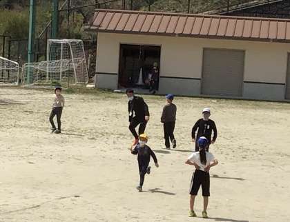 一年生も元気いっぱい外遊びができましたね。小さい子を案内しているお兄さんもいます。