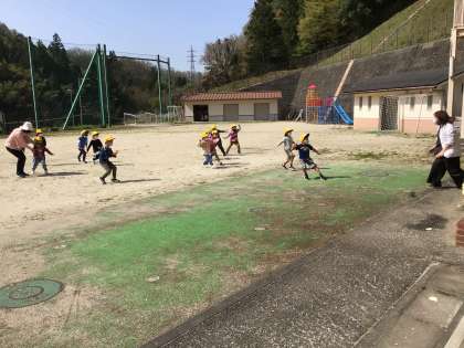 1年生の子供たちは運動場で元気いっぱい遊びました。