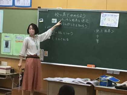 「絵の具でゆめもよう」という課題で絵の具を使ったいろいろな技法を学びました。