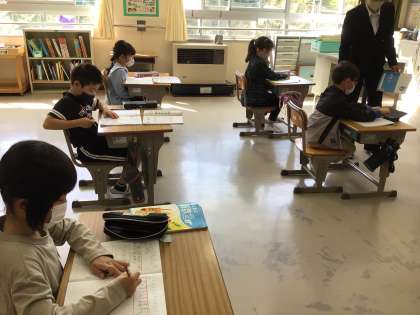 2年生は、人気の遊びが一目で分かるように、グラフに表す学習をしました。それぞれが画用紙に記入したものを黒板に並べると、あっという間にグラフになりました。表との違いもよく学べましたね。新しい担任の先生と毎日しっかり勉強しています。