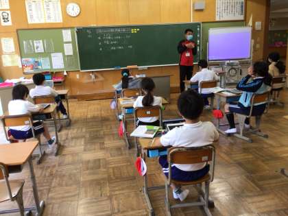 5年生は、タブレットで学習クイズをしていました。全問正解という子もいました。
