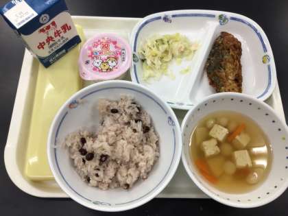 お赤飯でお祝いするメニューでした。デザートもついて、豪華でしたね。入学、進級、おめでとう。