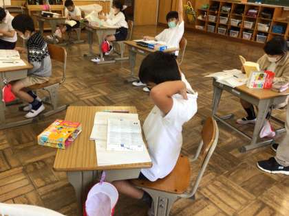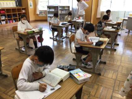 3年生は国語辞典を使って、難しい言葉を調べました。とっても集中していましたね。五十音順に並んでいるのがわかったかな。