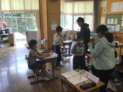 英語で会話をして、同じカードを持っている人を見つけるゲームをしました。