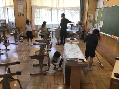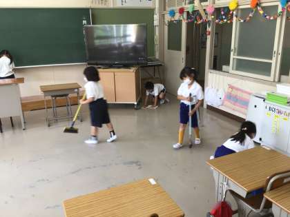 新学期が始まり、2週間が経ち掃除にも慣れてきました。みんなとても一生懸命掃除をしています。