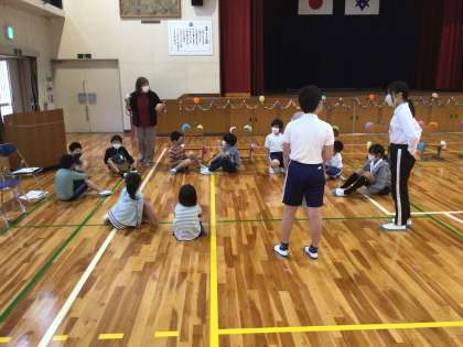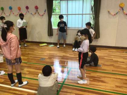 新1年生を迎えて、自己紹介やグループ遊びなど、縦割り班で活動しました。