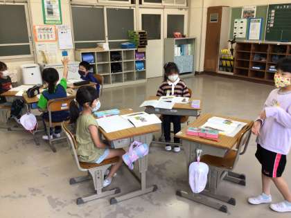 国語辞典がなくても、友達の説明で言葉のイメージを広げていきます。根が「はる」、みが「じゅくす」は全員が説明できなかったのですが、話し合ううちに、バナナやイチゴは熟すよ、根がはるは、広がっていくのかな、と納得できました。これからの学習でさらに説明文の中での意味を考えていきましょうね。