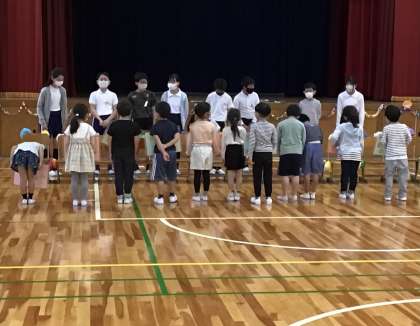みんなが教室に戻った後、六年生と一緒に写真を撮る一年生。最後に、今日はありがとうございました、とお礼を伝えました。温かい気持ちになりますね。