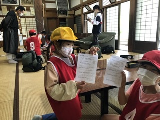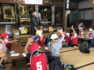 皆福寺では、毎年クイズを準備してくださっています。子供たちは、逸話にもびっくり!ライオンとボタンはセットになったお話やツルとカメが協力したお話をうかがいました。