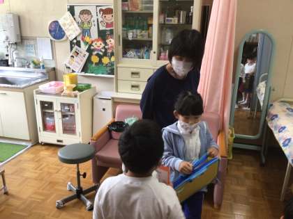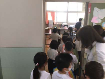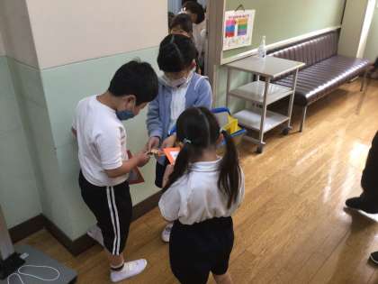 2年生のお兄さんお姉さんと一緒に、1年生が学校探検をしました。