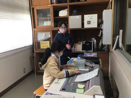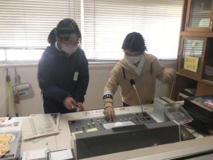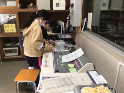 文化委員会が交代で、給食の時間にお昼の放送をしています。「今日は何の日」や曲を選んで流しています。