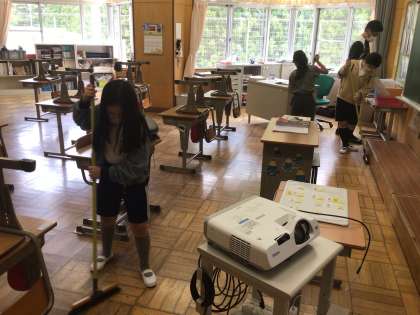 清掃活動を今日まで学級ごとに行ってきましたが、来週からは縦割り班で行うようになります。