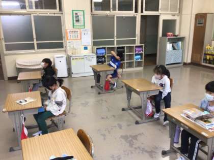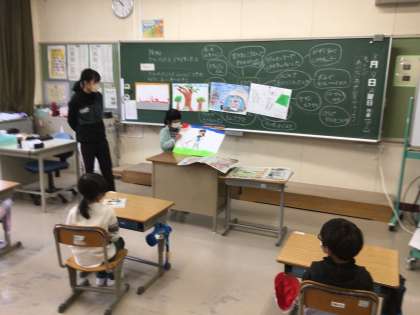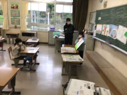 図工で楽しかったことを絵で表現して、みんなの前で発表しました。