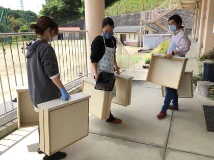 今日はちょボラ、ちょこっとボランティアの皆さんが、家庭科室の整備に来てくださいました。10、11、13日の3日間です。できる時にちょこっと子供達の活動を下支えしてくださる皆さんです。最初に計画を立てて、拭いたり、洗ったり、整えたりと大活躍です。尊い!ありがとうございます。