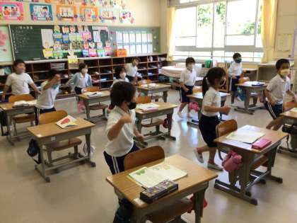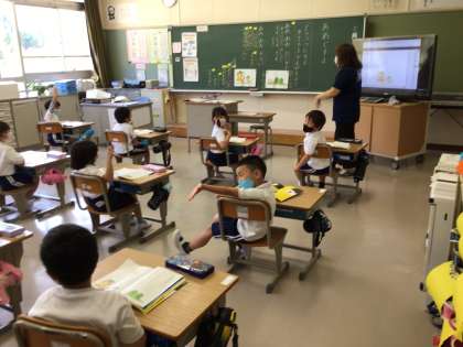 1年生は雨降りの時のうれしい気持ちや残念な気持ちが表れるように、声の調子や動作で表現する学習をしました。お友達の考えた動きをみんなで楽しむ一年生でした。
