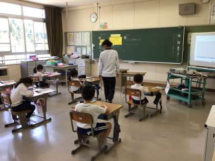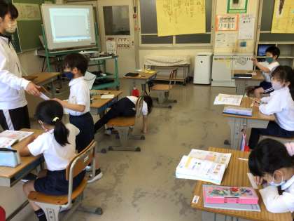 2年生は算数の時間に、定規を使って3センチを測っていました。しっかり押さえてまっすぐに線を引きます。明日は色紙のくさりができそうですね。