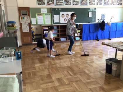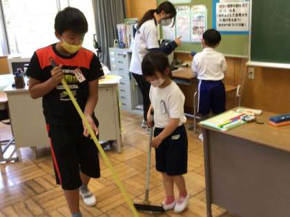 今日からわくファミ掃除、異学年のグループによる清掃が始まりました。