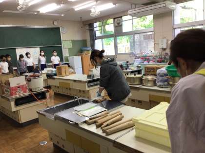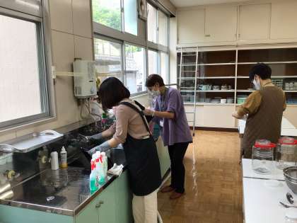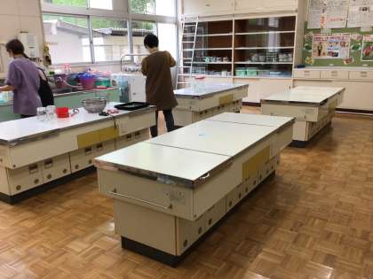 今日は3名の皆さんが家庭科室の整備に来てくださいました。