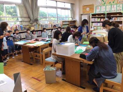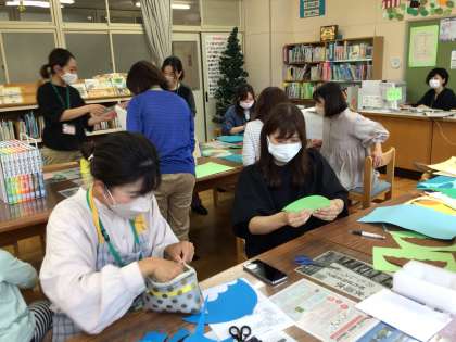 図書館の飾り付けや本の整頓など、いつもお世話になっているクローバーさんが来てくださいました。今年は新たにメンバーも増えて、さらにパワーアップ、どんどん居心地のよい図書館になります。今日はさっそく図書館飾りを作成してくれました。てんとう虫が図書館のどこかにいるので、見に来てくださいね。