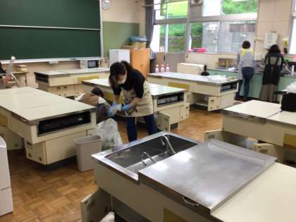 今日は家庭科室整備計画の最終日でした。
