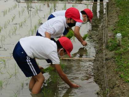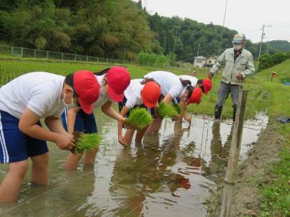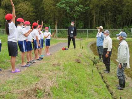 泥だらけになったけど、結構冷たくて気持ちよかったと、口々に伝えてくれました。オタマジャクシ、アメンボ、カモなど、たくさんの生き物が暮らす豊かな自然がいっぱいの私たちのふるさと。講師の皆さんからは、こうした農業のよさも感じてくださいという、メッセージがありました。ありがとうございました。水の調節など、お世話になります。