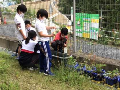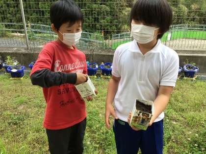 4年生の子供たちは理科の学習でツルレイシを観察します。今日は公務手さんが準備してくださった土を容器に入れました。空き容器の準備をありがとうございました。