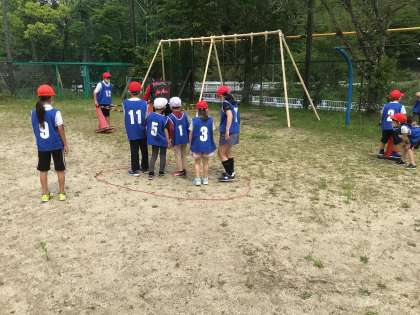 縦割り活動で、昼の放課に、遊びました。事前に高学年の班長さん達は、お互いに考えた遊びの方法やルールを伝え、話し合い、遊びの内容を決めていくことで、協働的な学びのプロセスを身につけていきます。