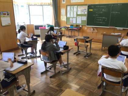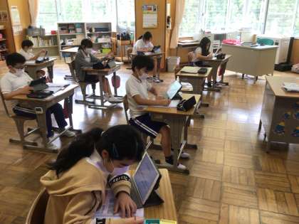 「メダカのたんじょう」について学習しました。はじめに、タブレットを使って、メダカの飼い方やオスメスの違いを調べました。