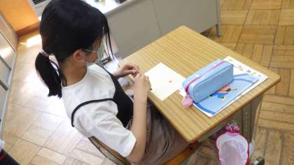 なかよしタイムで外遊びをした後、ラリー表に色を塗りました。
