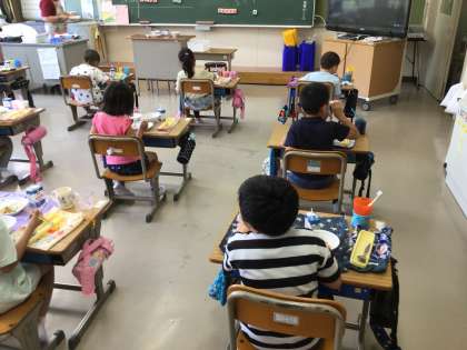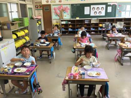 教室に行くと配膳は、終わっていました。みんな、美味しそうに給食を食べていました。