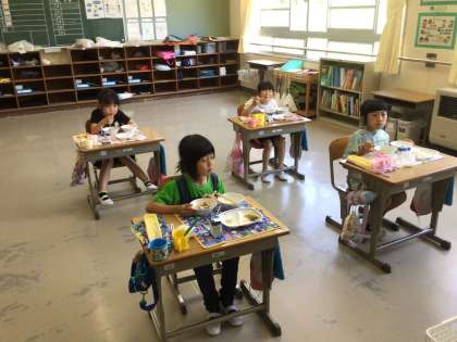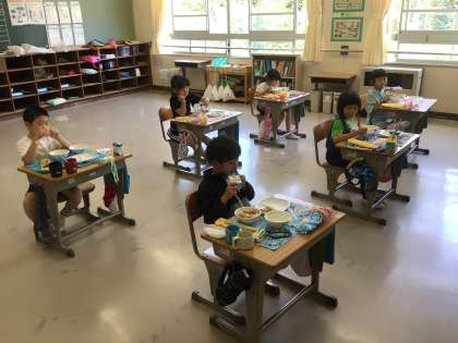 黙食が続いています。みんながんばって食べています。
