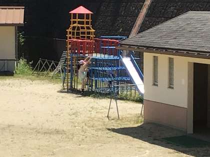 ふれあいタイムに、サッカーをしたり、遊具であそんだり、明日のスポーツテストのために立ち幅跳びの練習をしました。