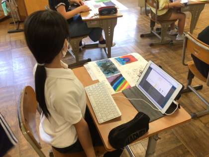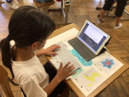作品の感想をタブレットを使って入力しました