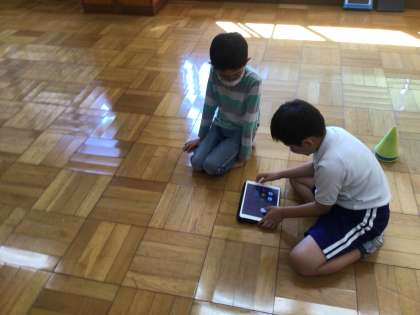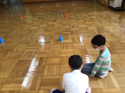 mBotをタブレットで操作して、いろいろなコースを走らせました。