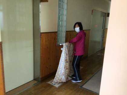 トイレのカーテンを洗濯して取り付けてくださっていたのです。梅雨の季節を前に、さわやかに過ごすことができます。感謝!