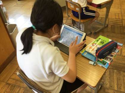 タブレットに配布された資料で、降水量と地域の関係を調べました。