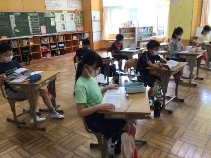 6年生は漢字ドリルを使って学習しました。音楽の合図で学習タイムがスタートです。