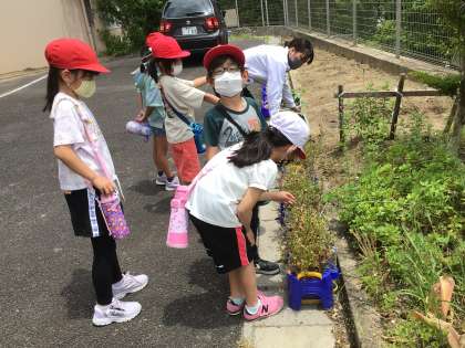 担任の先生としては、以前植木鉢にあったビオラも片付けようとしていたのですが、子供たちはぎっしりと種がつまった実を見つけて大喜び。国語のタンポポの学び合いを思い出したようです。タンポポのように綿毛ではないけれども、「このようにして仲間を増やしていくのです」と気付くことができました。しばらく植木鉢はそのままにということになりました。