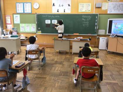 4年生の子供たちは外国語活動でICT機器を使って、季節の表現を学習しました。雪が降る季節をWINTERと、すかさず答えていました。