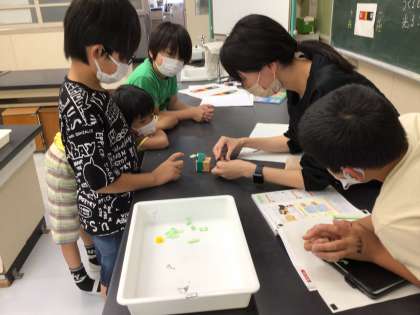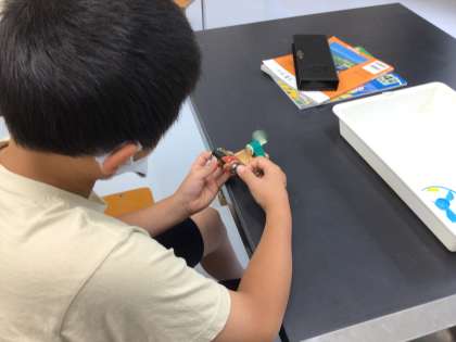 4年生は理科で電池の働きを学んでいます。電池については、3年生でも学んでおり、学習経験を生かした学びがポイントです。今日は、乾電池の向きをかえたときのモーターの動きに注目して、電気の流れについて学び合いました。みんなで予想を立て、実験結果から考察します。次の時間は、目に見えない電流について考えを深めます。
