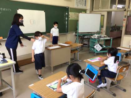 どちらの門を登下校で使うのかみんなで確かめて、話し合いながらマップを完成させました。子供たちがそれぞれに描いたマップには春になって近くで発見したものがていねいに描かれていました。マップ作りを中心に楽しい学び合いの姿が見られました。