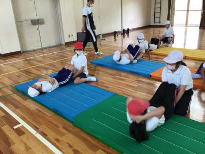 5年生の体力テストの様子です。 自分の限界に挑戦。時間との勝負です。