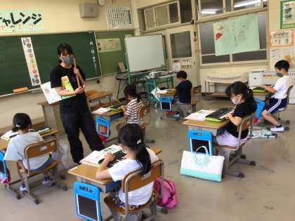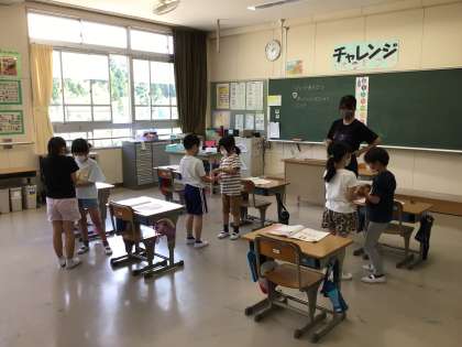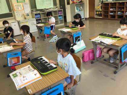 2年生は音楽の時間にわらべうたを楽しんだ後、ドレミの歌をミニオルガンで弾く練習をしました。
