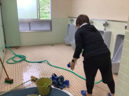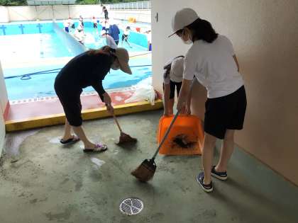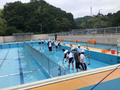今日は朝から小雨が降り、実施があやぶられましたが、無事プール清掃を行うことができました。