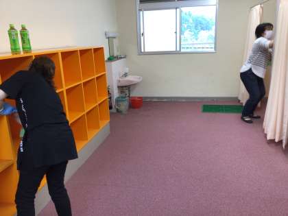 プール清掃ボランティアの皆さんは、子供たちではやりきれない場所を中心に清掃してくださいました。トイレや更衣室を中心に2年以上手付かずの場所を繰り返しきれいにしてくださいました。