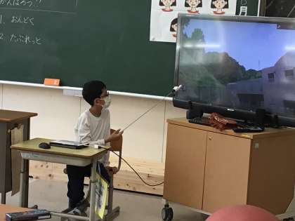 1年生のために、タブレットで作成した学校紹介ビデオを発表しました。