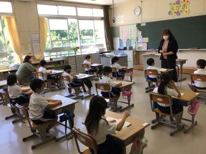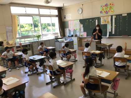 ねずみさんのしたことや思ったことについて、言葉の意味をとらえながら、内容を読み取りました。真逆の意味になる先生のポーズを見て、みんなにっこり。