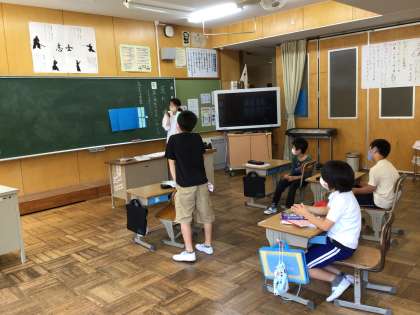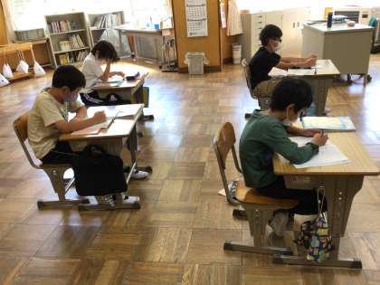 前の時間に調べた言葉について、担任の先生がまとめた模造紙を見ながら、2時間目の読み取りをしました。登場人物がどんな人たちなのか、文章中の言葉を手がかりに読み進めました。