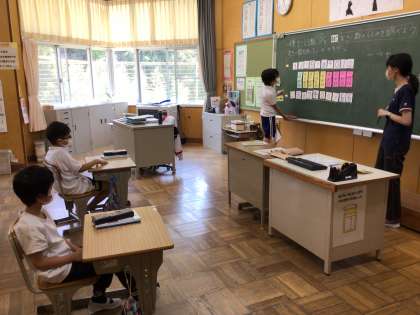 先生のしかけカードのおかげで、大きな数のつくり方に気付いた4年生でした。