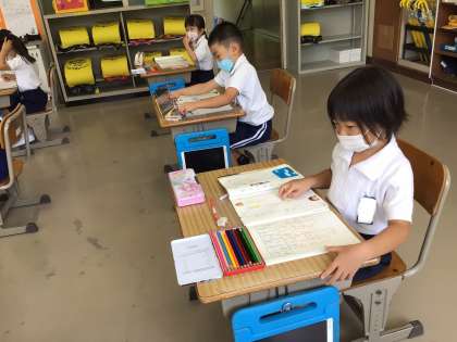 1年生の国語では、くっつきの、「は」の練習中でした。